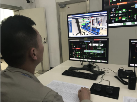 “第一個(gè)模塊是基于三維可視化的運(yùn)行及培訓(xùn)系統(tǒng),以虛擬電廠(chǎng)為例。我們的虛擬電廠(chǎng)以江蘇省電力設(shè)計(jì)院提供的二維圖紙以及部分管道的三維模型為基礎(chǔ),通過(guò)對(duì)主、輔機(jī)設(shè)備進(jìn)行三維掃描,形成高精度、等比例的三維建模,與實(shí)際廠(chǎng)區(qū)布置和設(shè)備高度吻合,真正實(shí)現(xiàn)了一個(gè)全方位的智慧電廠(chǎng)。”大唐泰州熱電公司黨委書(shū)記魏治俊向記者介紹。